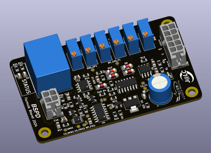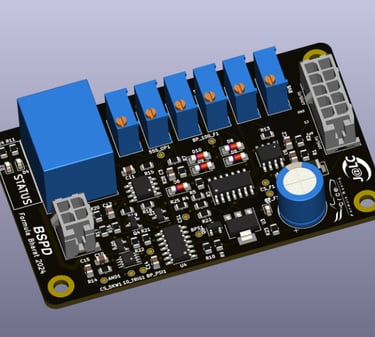 The Brake System Plausibility Device (BSPD) is a mandatory safety system in electric racing vehicles that monitors the consistency between braking input and motor torque. Its role is to detect implausible conditions, such as simultaneous high throttle and braking, and to trigger a system shutdown to ensure driver safety. The BSPD relies on reliable sensor monitoring, analog and digital electronics, and strict compliance with Formula Student safety regulations.